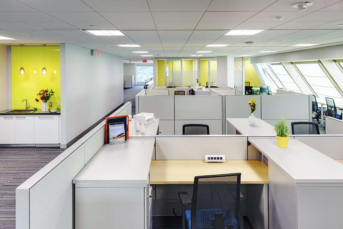 The design optimized daylighting opportunities, keeping the building perimeter open or utilizing glass fronts at enclosed collaboration spaces.