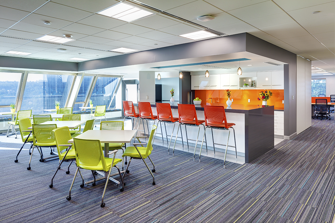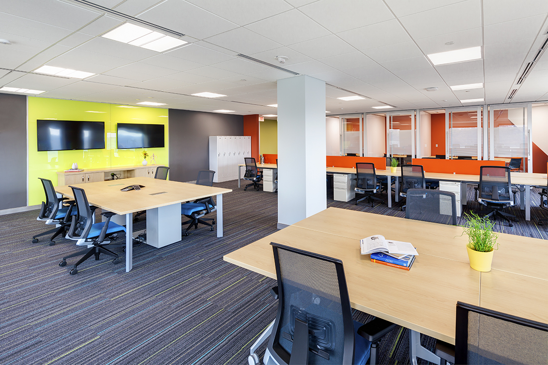 The design goal was to transform the dark and monotonous space into a contemporary, light and bright space that promoted collaboration and flexibility, appealed to the end users, who are primarily millennials and created a unique space that would attract and retain top talent