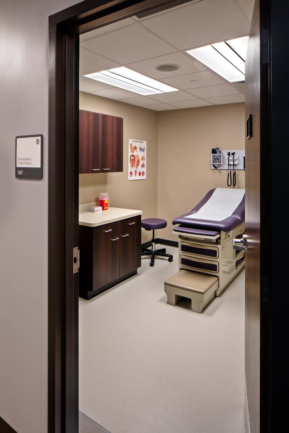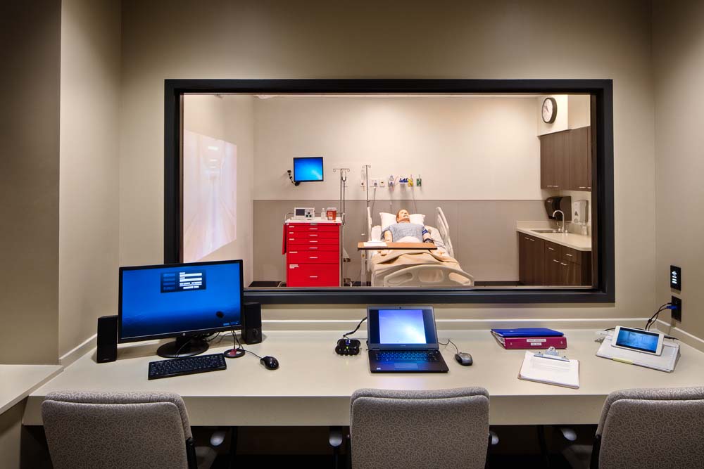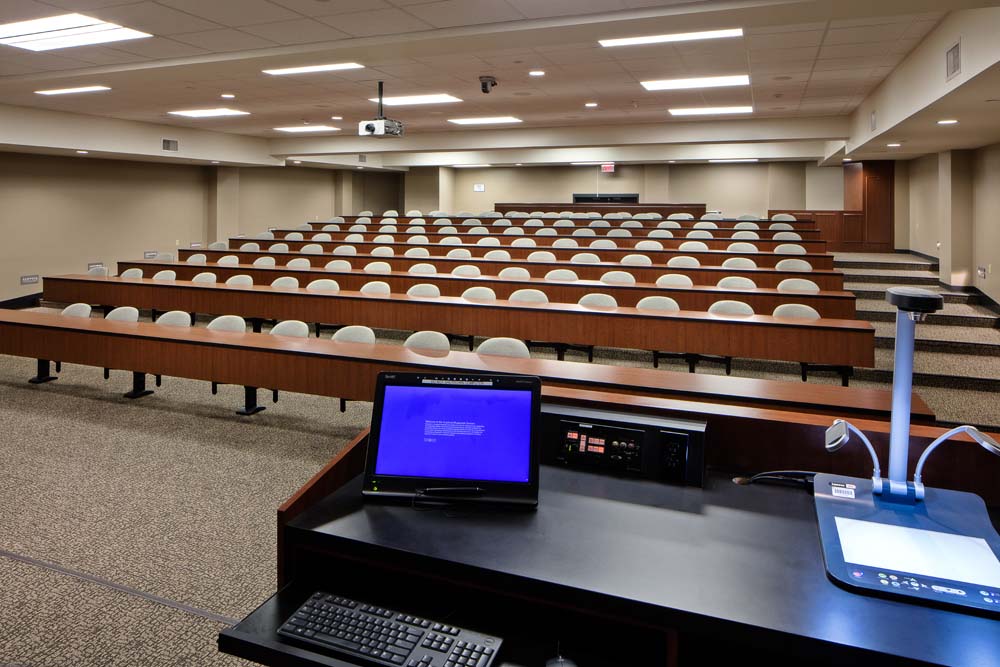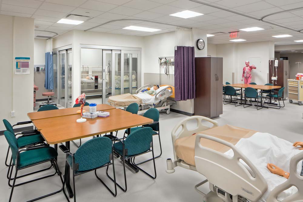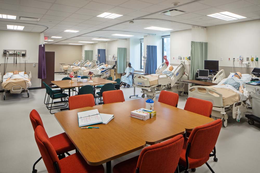 Work on the first floor included renovations that transformed a space into a lounge/collaborative work space for students; new finishes; and mechanical, electrical and piping upgrades. Work to the 2nd, 7th and 8th floors and part of the 3rd floor included selective demolition, new work and associated mechanical, electrical, piping and fire protection work. The 4th floor renovation converted 2 general purpose classrooms into biomedical engineering labs and another classroom into a study and tutoring lounge for that department. The redesign of the 5th floor included the design of Simulation Labs and Control Room; an eight bed Skills Lab; thirty seat Computer Lab; ancillary support and office areas; and mechanical, electrical and piping upgrades.