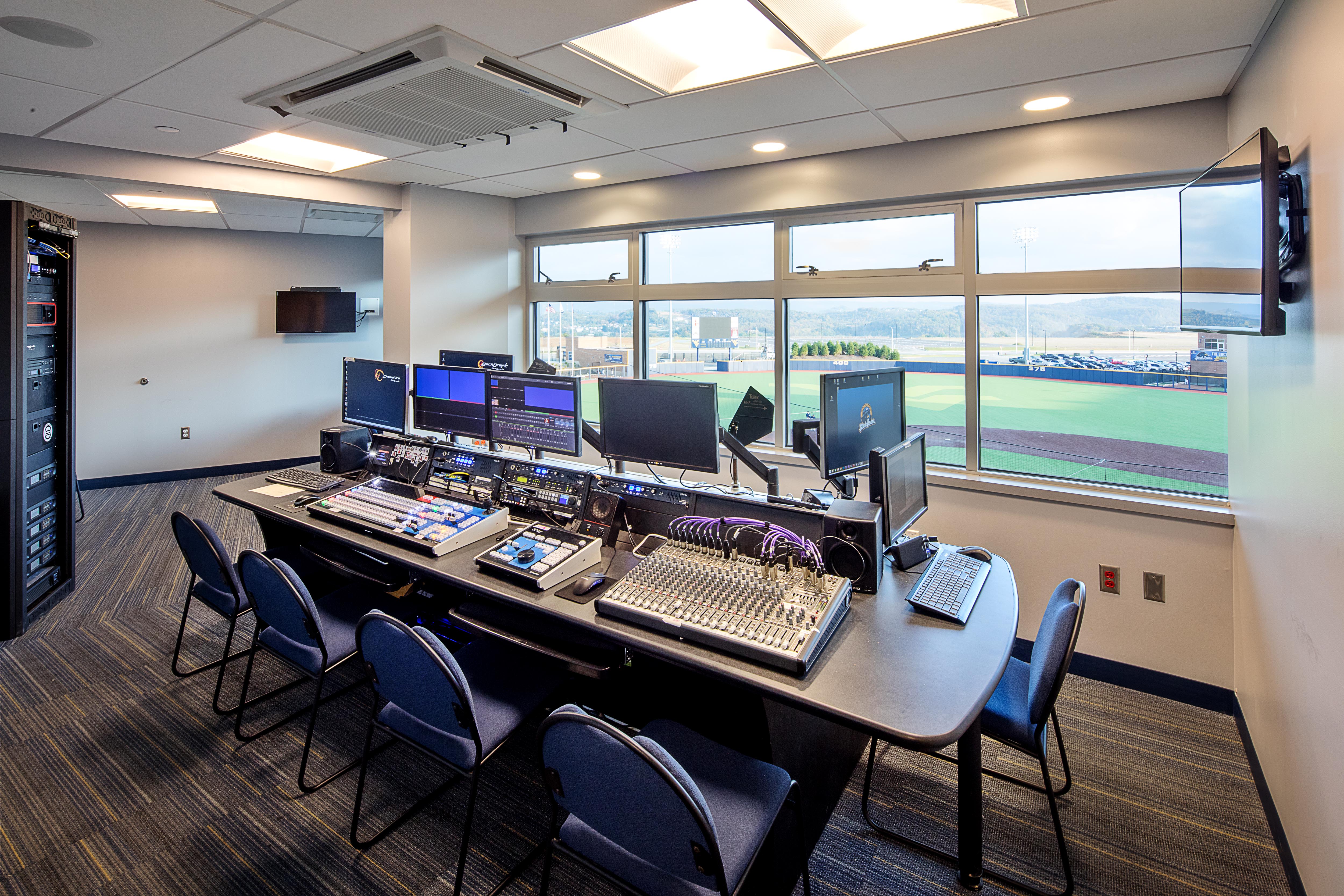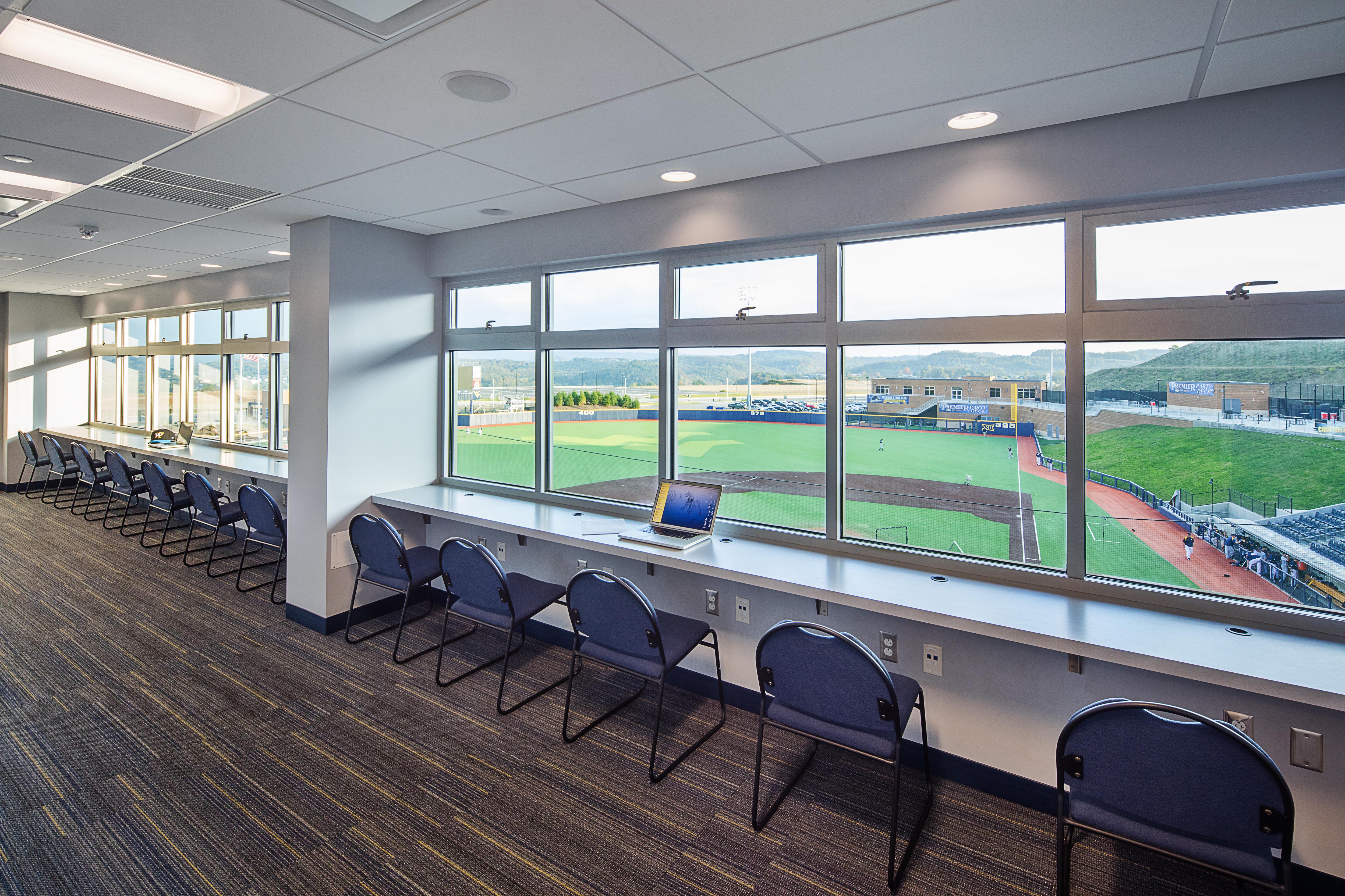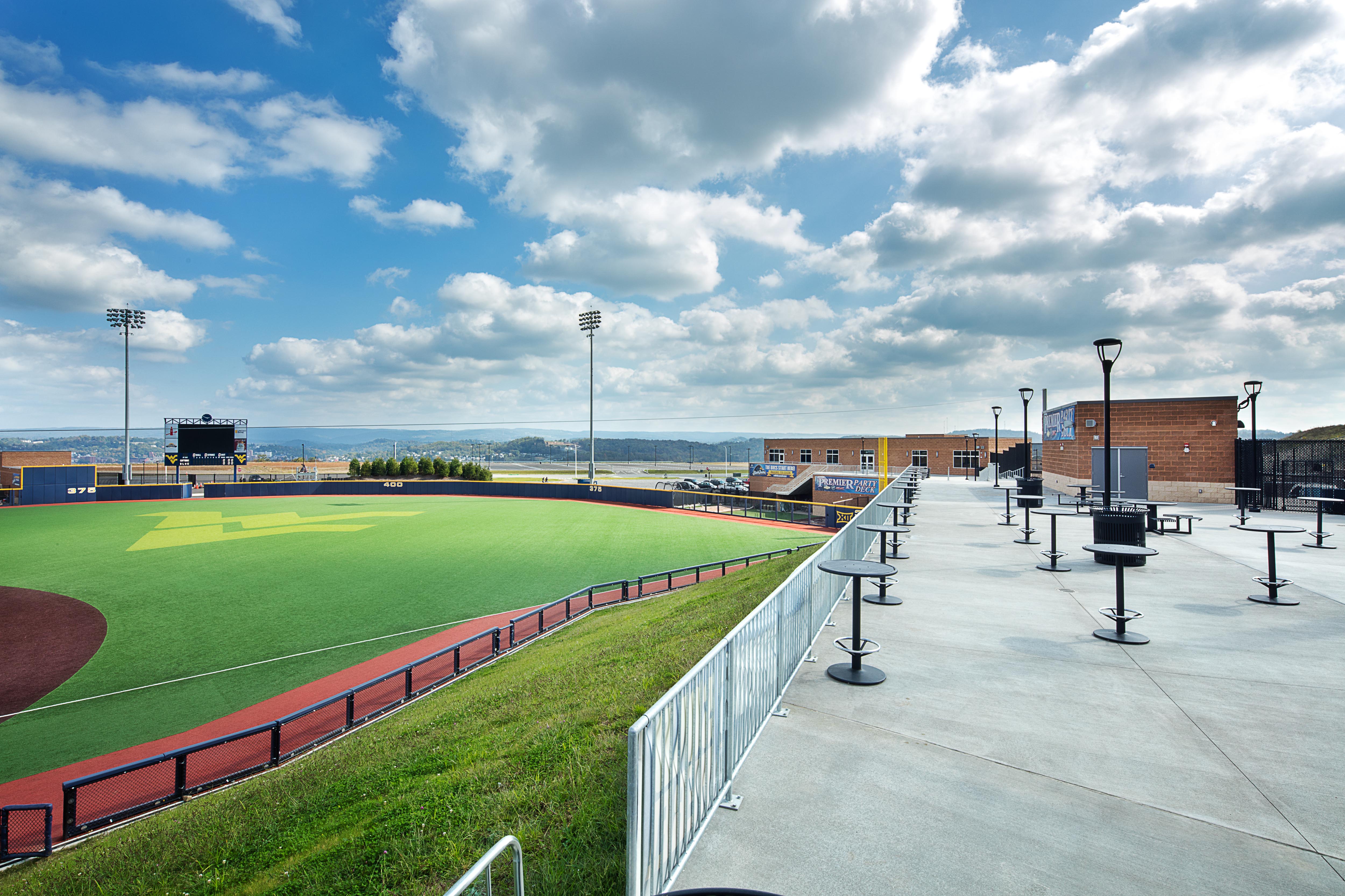 While construction was underway and design was being finalized, the New York-Penn League Jamestown Jammers announced that they would be moving the team to Morgantown. The team would later become the West Virginia Black Bears and make their home at the new park. The completed ballpark allows approximately 3,500 fans to enjoy a game from the grandstand seating bowl that runs the span of the infield, club/ suite, or lawn berm seating space. A party deck and field patio areas provide flexible seating. Concession stands and a team store are located along the concourse level behind the seating bowl. The stadium features the latest in audio / visual amenities and a press box and press support facilities for both radio and TV. In addition to a WVU team clubhouse, player lounge, equipment room, and team meeting space, there is a separate space for the minor league clubhouse and offices. The two teams share the training and hydrotherapy rooms.