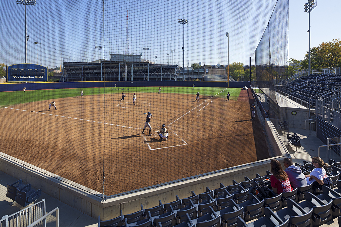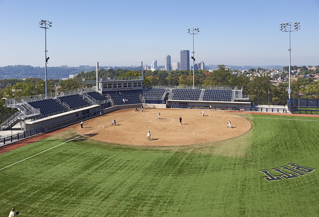- Softball Stadium: has a skinned infield with an artificial grass outfield, as well as hitting and pitching practice areas. The stadium has lighting, team dugouts and a press box.