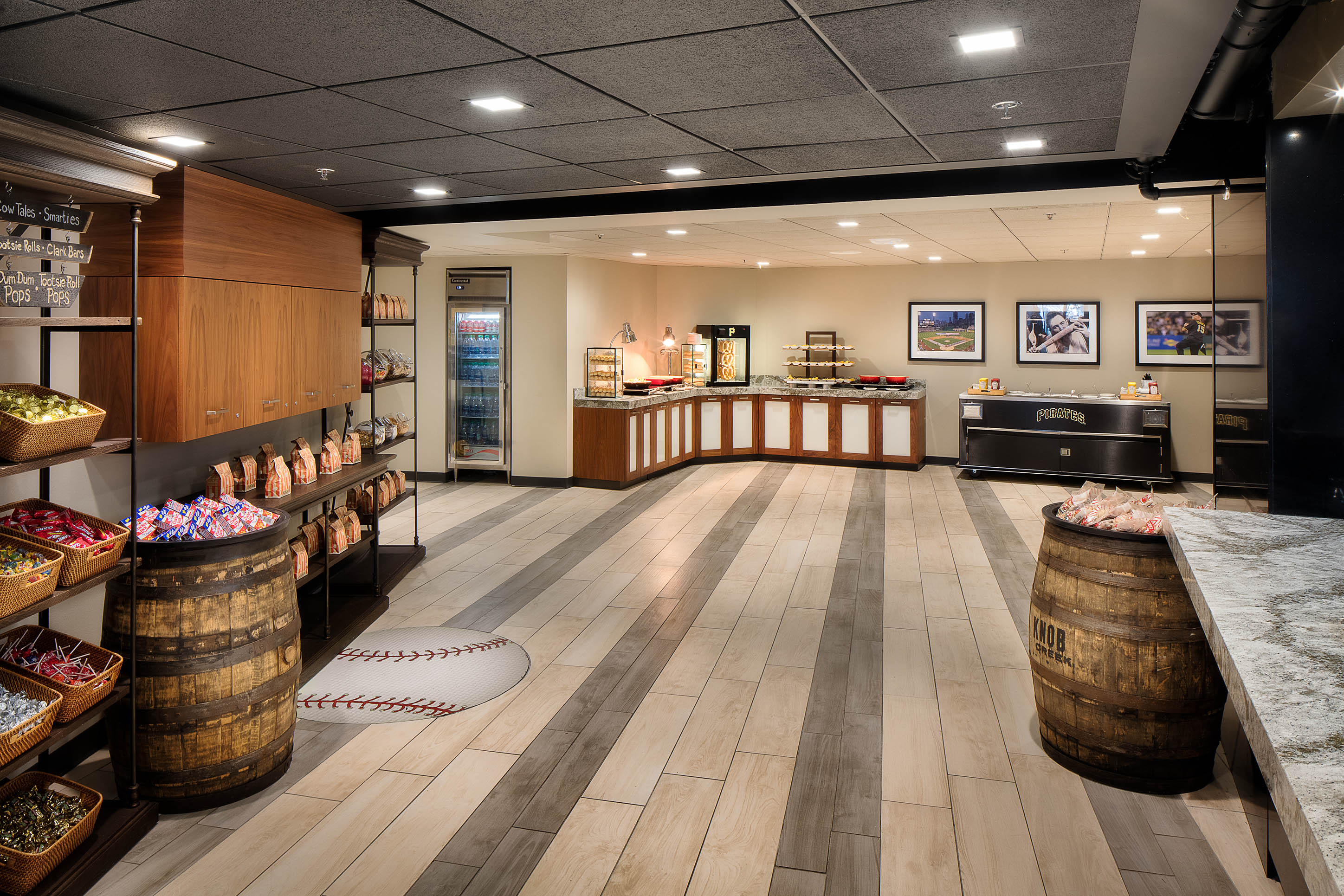 The Pirates asked DLA+ to work with Populous on the renovations of the Home Plate Club at PNC Park. Our scope included interior design and furniture selection for the dining room, bar, toilet rooms and grab-and-go areas. The design included new high-end finishes and furnishings, custom millwork, and technology integration, including new LED televisions and USB charging stations at the bar, as well as incorporating existing and new team branding, artwork, and memorabilia.