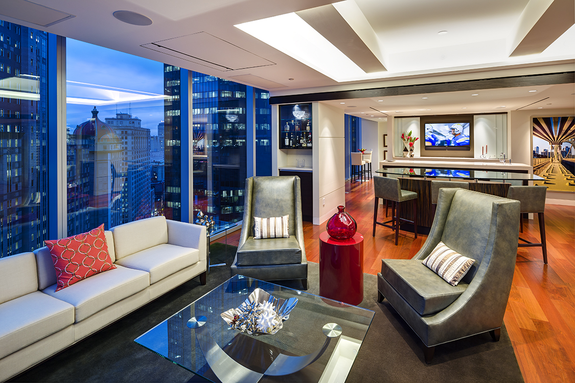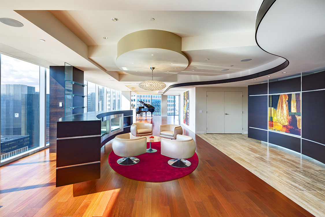 DLA+ designed this private residence interior fit-out at the Residences at Three PNC Plaza. The scope of this project included combining two units into one 6,500 SF space that would occupy the entire floor of the building.