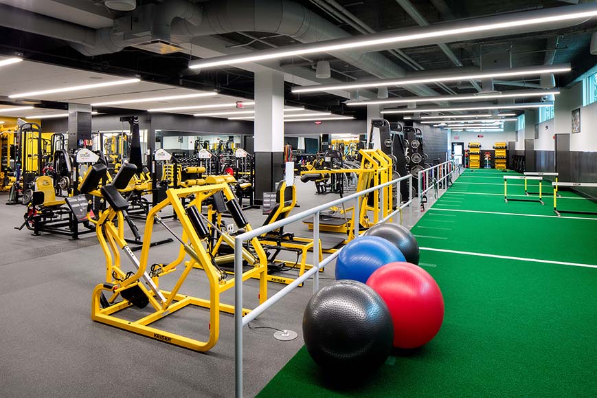 DLA+ was tasked with renovating and expanding the weight room and front entry as well as renovating the hydrotherapy area, lobby space and converting an area at the Indoor Training Facility into offices. The project would have a tight schedule of only six months from design to completion of construction.