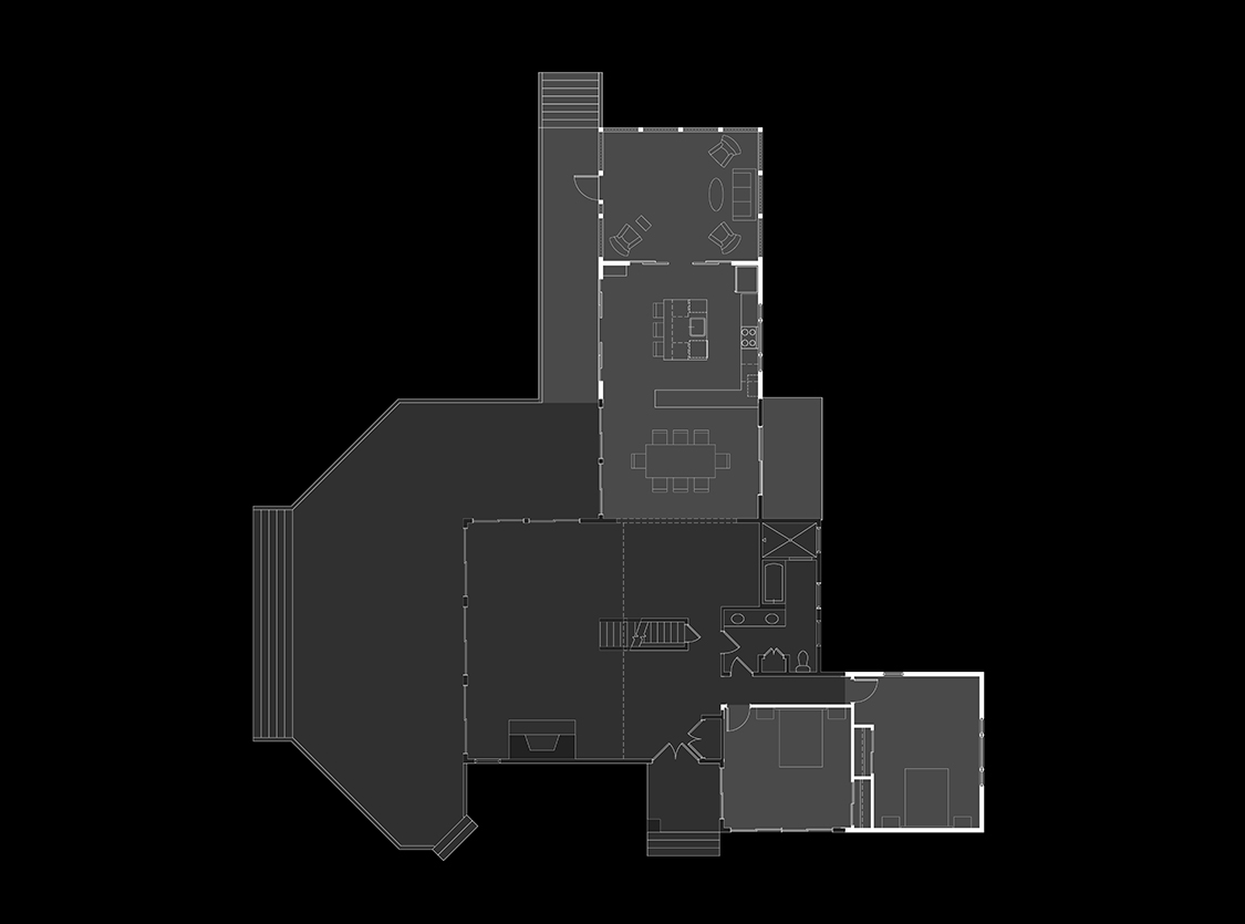 DLA+ was tasked with renovating and expanding the single-family residence on a large, wooded lot east of Pittsburgh. The project included an addition of a first-floor bedroom at the front of the house, expanding the dining room and kitchen at the rear, and adding a three-season screened in porch. A new master bedroom was added at the rear of the second floor. Exterior decks were either added or expanded. Most of the interior was updated with new finishes and fixtures.